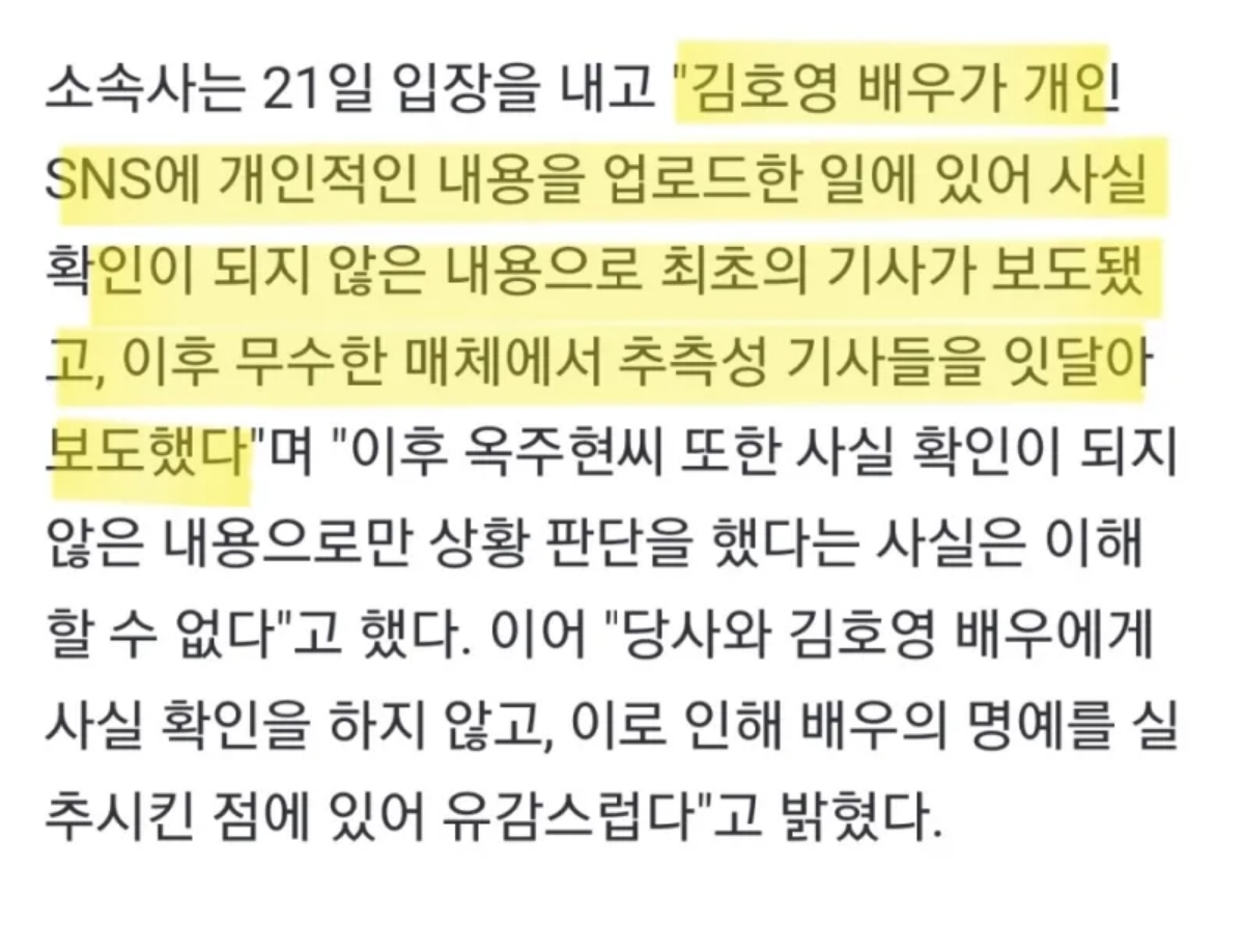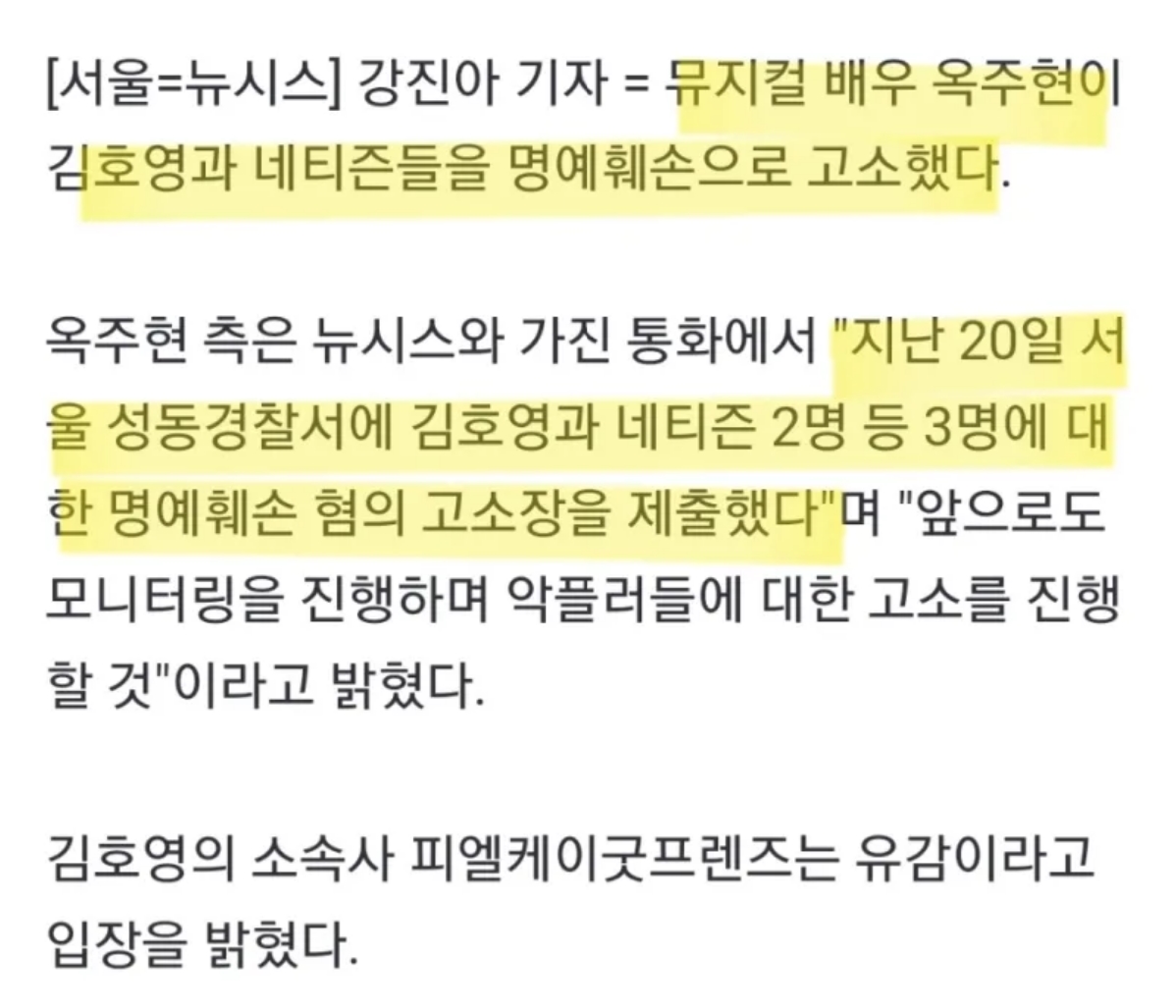 아무튼 이후 김호영도 옥주현이 멋대로 상황을 판단했다며 맞고소를 시사함.(뭘로..?)